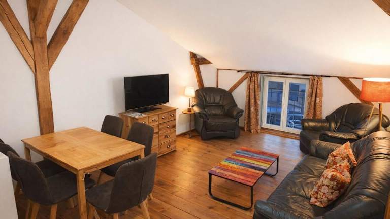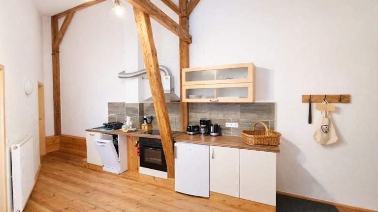 Die Apartments im Spreewald Spreemilia Gurkenbude sind geräumig und hell gestaltet. Sie verfügen über einen gemütlichen Sitzbereich, einen Flachbild-TV und ein großes Badezimmer. Der charmante Landhausstil mit Holzböden und qualitativ hochwertigen Holzmöbeln sorgt für eine behagliche Atmosphäre. Jedes Apartment ist zudem mit einer voll ausgestatteten Küche inklusive Geschirrspülmaschine ausgestattet, so dass Sie Ihre eigenen Mahlzeiten und Snacks zubereiten können.