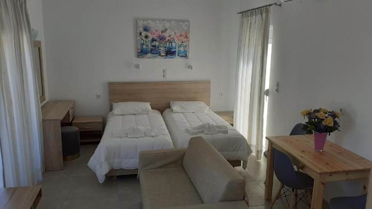 Die Apartments in den Haralambos Apartments sind hell und klimatisiert. Jedes Apartment verfügt über einen eigenen Balkon, auf dem Sie die frische Meeresluft genießen können. Eine Küchenzeile mit Kühlschrank steht Ihnen zur Verfügung, so dass Sie sich selbst verpflegen können.