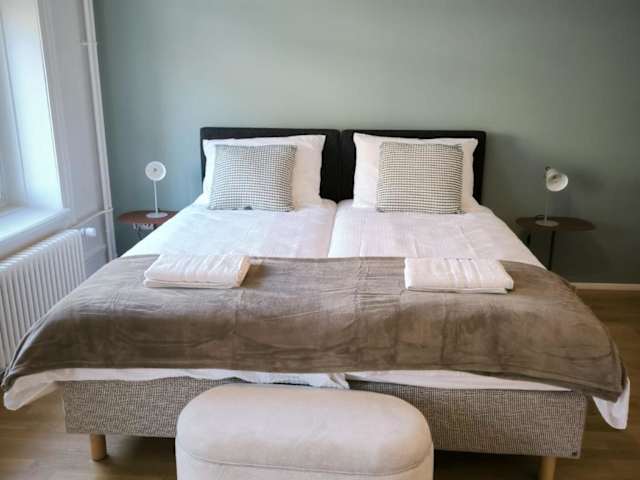 Die Unterkunft verfügt über Zimmer mit kostenlosem WLAN, einem Sitzbereich, einem Flachbild-TV sowie einem eigenen Badezimmer mit Badewanne oder Dusche und Haartrockner. Die Küche ist ausgestattet mit Kühlschrank, Ofen, Herdplatte, Toaster, Kaffeemaschine und Wasserkocher. Es werden Bettwäsche, Handtücher und Wäsche nach den Richtlinien der örtlichen Behörden bereitgestellt.