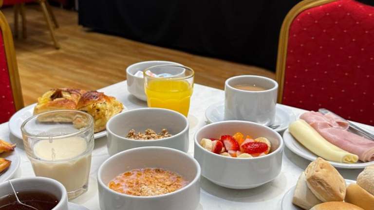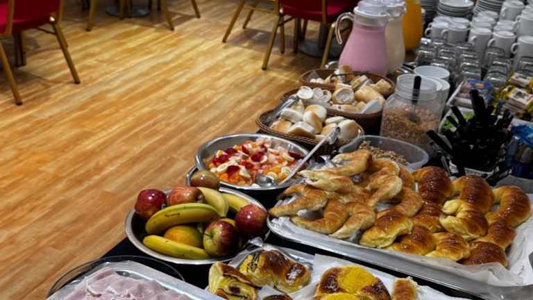 Das Intersur Suites Hotel bietet ein reichhaltiges Frühstück mit einer Vielzahl von Optionen, darunter Croissants, frische Säfte und regionale Marmeladen. Das Frühstück kann entweder auf dem Zimmer oder im modernen Frühstücksraum eingenommen werden. Das Hotel verfügt auch über ein Restaurant, in dem Sie weitere Mahlzeiten genießen können.