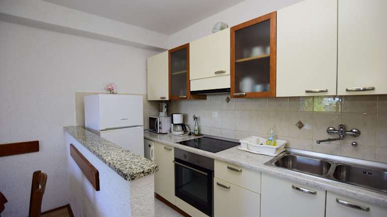 In den Apartments Kampor haben Sie die Freiheit, Ihre eigenen Mahlzeiten in der voll ausgestatteten Küche zuzubereiten. Alternativ können Sie auch die Strandpromenade entlang spazieren und die zahlreichen Restaurants und Cafés entdecken, die lokale und internationale Küche servieren. Genießen Sie frischen Fisch, mediterrane Spezialitäten und erfrischende Getränke mit Blick auf das Meer.