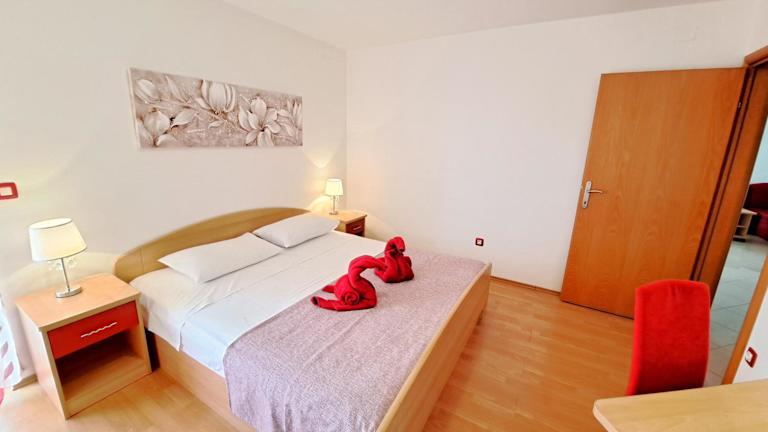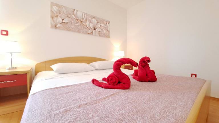 Die klimatisierte Wohnung im Apartman Scarlett bietet Platz für bis zu 4 Personen. Sie verfügt über 2 Schlafzimmer und eine voll ausgestattete Küche. Vom Balkon aus haben die Gäste direkten Zugang zu einer Terrasse. Zur weiteren Ausstattung gehört ein Flachbildfernseher. Kostenloses WLAN und kostenfreie Parkplätze stehen den Gästen zur Verfügung.