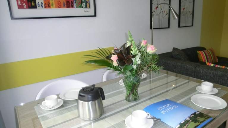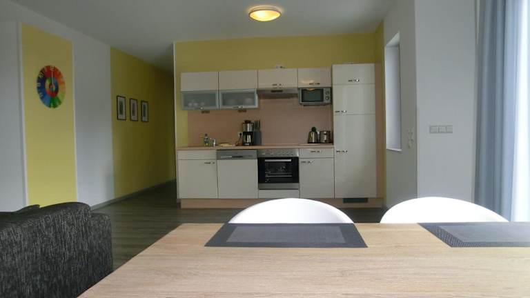 Die Apartments im Kleeblatthaus Putbus Rügen sind stilvoll eingerichtet und bieten allen Komfort, den Sie für einen angenehmen Aufenthalt benötigen. Jedes Apartment verfügt über kostenfreies WLAN, einen Flachbild-TV und einen DVD-Player. Das Badezimmer ist modern und mit einem Haartrockner ausgestattet. Eine voll ausgestattete Küche mit Geschirrspüler und Mikrowelle steht Ihnen ebenfalls zur Verfügung. Genießen Sie Ihren Aufenthalt in einem der modernen und komfortablen Apartments.