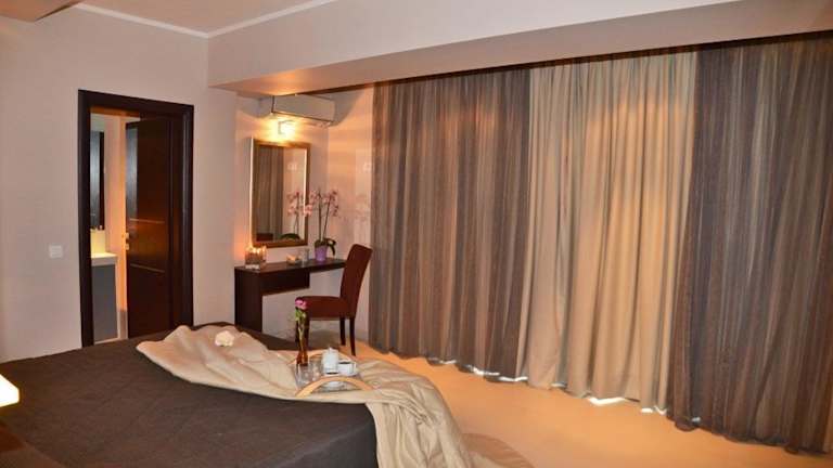 Das Kymothoe Elite verfügt über einen eigenen felsigen Privatstrand, den Sie über einen Kieseweg erreichen können. Hier können Sie sich entspannen und die Sonne genießen. Das Hotel bietet auch Massagen und Schönheitsanwendungen an, um Ihnen eine zusätzliche Entspannung zu ermöglichen.