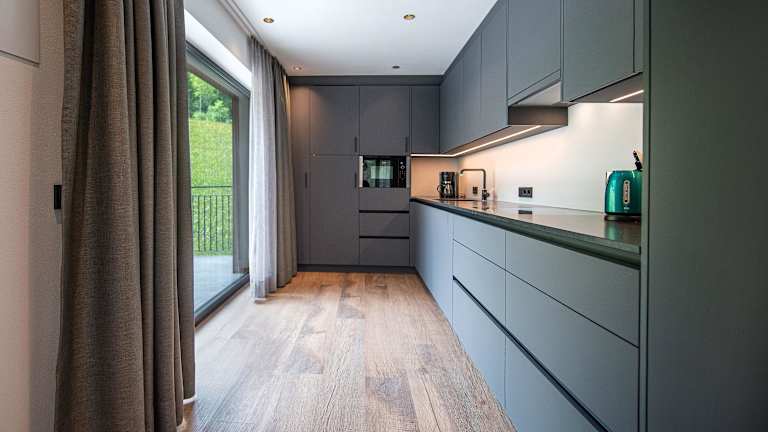 Die Apartments verfügen über eine voll ausgestattete Küche mit Kühlschrank und Geschirrspüler. Zusätzlich sind Mikrowelle und Wasserkocher vorhanden. Jedes Apartment verfügt über ein eigenes Badezimmer, das mit einem Bidet und einem Haartrockner ausgestattet ist.