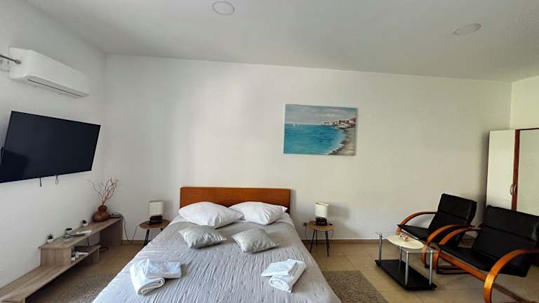 Die Apartments Lira befinden sich in Soline, einem kleinen Dorf bei Mlini. Sie bieten einen atemberaubenden Blick auf das Meer und sind nur 80 m vom Kieselstrand entfernt. Die Altstadt von Dubrovnik ist über die nahegelegene Staatsstraße 8 bequem zu erreichen. In der Nähe befinden sich ein Restaurant und eine Bushaltestelle, von wo aus Sie alle 30 Minuten einen Stadtbus nach Dubrovnik nehmen können. Ein Lebensmittelgeschäft ist ebenfalls nur 1 km entfernt. In dem Nachbardorf Plat, das 1 km entfernt liegt, können Sie den beliebten Sandstrand genießen und auf dem Tennisplatz spielen. Sie haben auch die Möglichkeit, Jet-Skis zu mieten und verschiedene Ausflüge bei den örtlichen Bootsbesitzern zu buchen. Der Flughafen Dubrovnik ist nur 8 km entfernt.