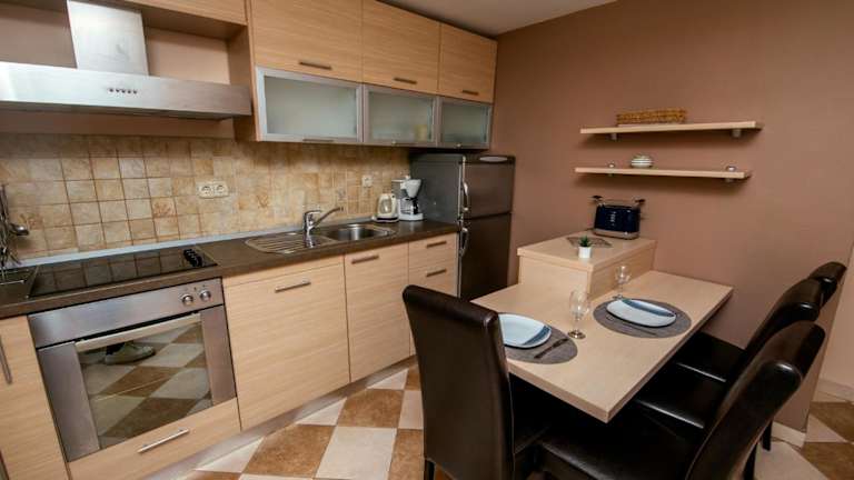 In den M&M Apartments können Sie Ihre eigenen Mahlzeiten zubereiten, da jede Küchenzeile mit allen notwendigen Geräten ausgestattet ist. Wenn Sie jedoch lieber auswärts essen möchten, finden Sie in der Nähe eine Vielzahl von Restaurants, die lokale Spezialitäten und internationale Küche servieren. Genießen Sie ein Abendessen in einem der Restaurants am Yachthafen und erleben Sie den Charme der Küstenstadt Biograd na Moru.