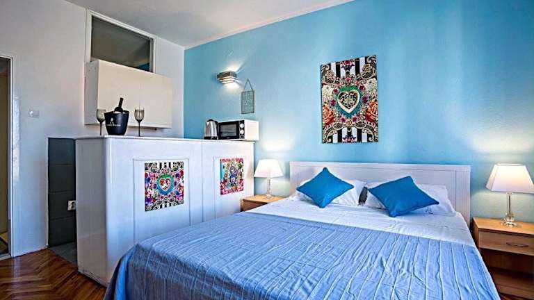 Die Apartments Marija in Supetar bieten eine ideale Unterkunft für einen Strandurlaub in Kroatien. Nur 100 m vom Kieselstrand und dem Zentrum von Supetar entfernt, bieten die klimatisierten Apartments kostenfreies WLAN und einen Gemeinschaftsgarten mit Grillmöglichkeiten. Die Unterkünfte sind komfortabel eingerichtet und verfügen über Sat-TV und ein eigenes Badezimmer. Einige Apartments bieten zudem einen Balkon oder eine Terrasse. Kostenlose Privatparkplätze stehen zur Verfügung. In der Nähe finden Sie eine Bar, ein Lebensmittelgeschäft und ein Restaurant mit regionaler und internationaler Küche. Ein Reisebüro organisiert Bootsfahrten und Wassersportaktivitäten, und ein Tauchzentrum befindet sich nur 500 m entfernt. Eine Bushaltestelle mit Verbindungen rund um Brač ist ebenfalls in der Nähe.