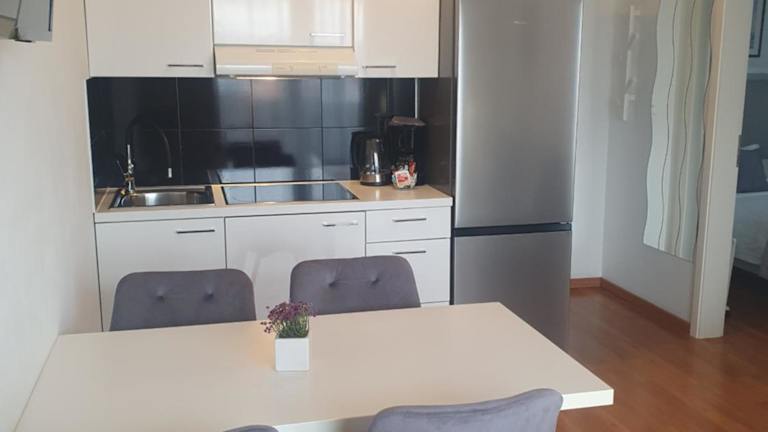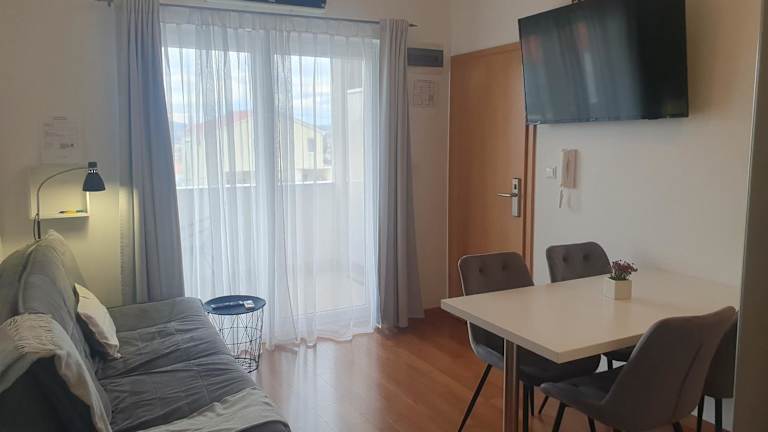 Die Apartments Marti bieten klimatisierte Unterkünfte mit kostenfreiem WLAN-Zugang. Jedes Apartment verfügt über eine Terrasse, auf der Sie entspannen können. Im Inneren finden Sie einen gemütlichen Sitzbereich mit einem Sofa und einen Flachbild Sat-TV. Die voll ausgestattete Küchenzeile mit Essbereich und Kühlschrank ermöglicht es Ihnen, Ihre eigenen Mahlzeiten zuzubereiten. Das eigene Bad ist mit einer Dusche ausgestattet.