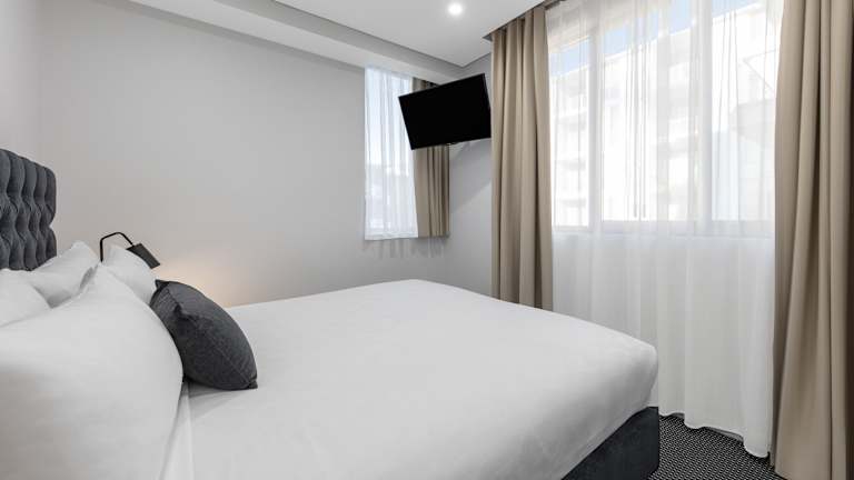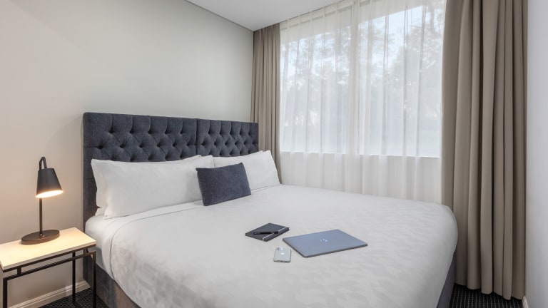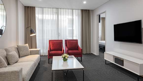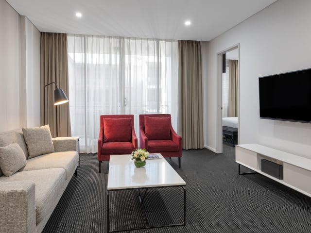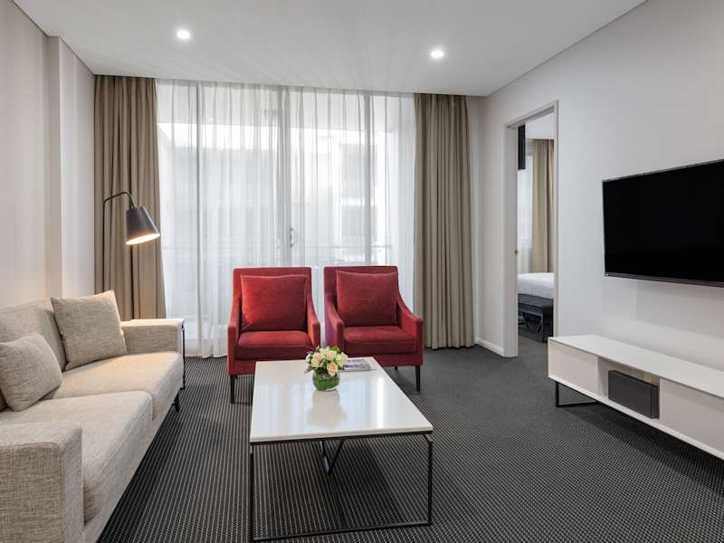 Die Suiten im Meriton Suites North Ryde sind modern und luxuriös eingerichtet. Jede Suite verfügt über eine gut ausgestattete Küchenzeile oder Küche, in der Sie Ihre eigenen Mahlzeiten zubereiten können. Der geräumige Sitzbereich lädt zum Entspannen ein und ist mit einem Flachbild-TV ausgestattet. Das Badezimmer bietet luxuriöse Pflegeprodukte für Ihr Wohlbefinden. Die klimatisierten Suiten sorgen dafür, dass Sie sich während Ihres Aufenthalts wohl fühlen.
