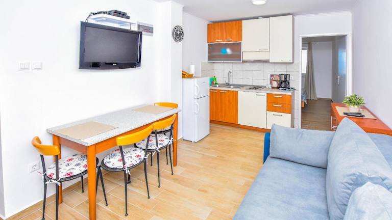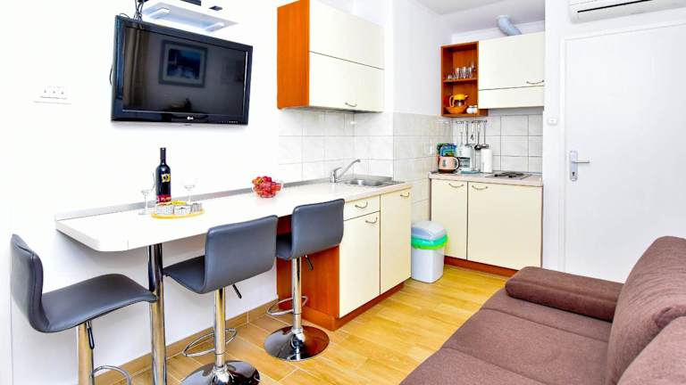 In den Apartments Mijo haben Sie die Möglichkeit, Ihre eigenen Mahlzeiten zuzubereiten, da jede Einheit über eine gut ausgestattete Küchenzeile verfügt. Alternativ können Sie auch die nahegelegenen Restaurants besuchen und die lokale Küche genießen.