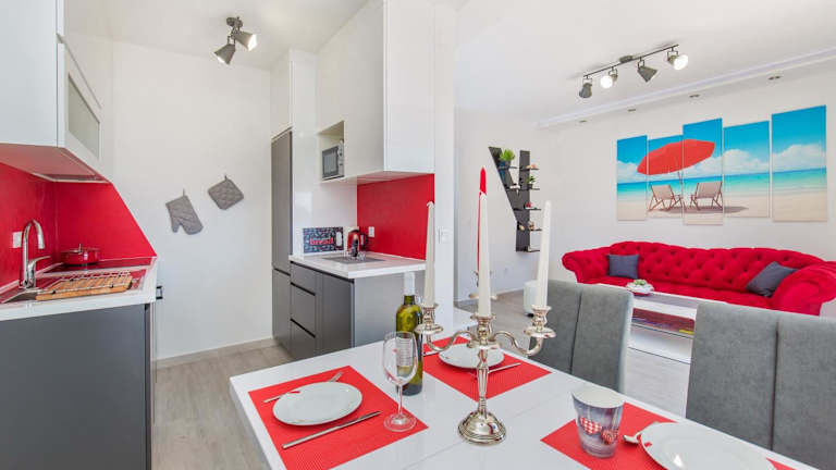 Die Apartments More bieten klimatisierte Unterkünfte mit Balkon und kostenfreiem WLAN. Die Apartments verfügen über eine Terrasse, Meerblick, einen gemütlichen Sitzbereich und einen Flachbild-TV. Die voll ausgestattete Küche mit Kühlschrank, Geschirrspüler, Backofen, Mikrowelle, Kochfeld und Wasserkocher ermöglicht es Ihnen, Ihre eigenen Mahlzeiten zuzubereiten. Das private Badezimmer ist mit einer Dusche und einem Haartrockner ausgestattet.