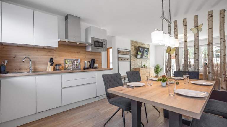 Die Unterkünfte sind mit einer voll ausgestatteten Küchenzeile, einem Esstisch, einem Flachbild-TV mit Satellitenprogrammen und einem eigenen Badezimmer ausgestattet. Zu den weiteren Annehmlichkeiten gehören ein Kühlschrank, ein Geschirrspüler, eine Mikrowelle, eine Kaffeemaschine sowie ein Wasserkocher. Jede Einheit verfügt über Heizung und bietet Platz für Familien.