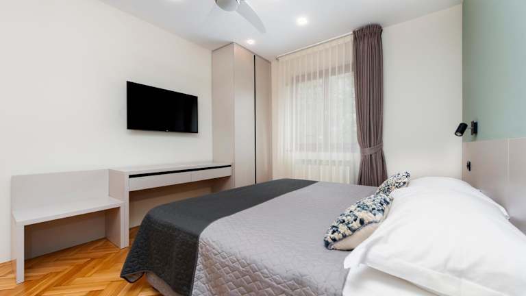 Die Villa B&B NiNa Rovinj befindet sich in einer erstklassigen Lage, nur 800 m vom nächsten Strand und 1,5 km von der Altstadt von Rovinj entfernt. Sie können die Schönheit der kroatischen Küste genießen und das kristallklare Wasser des Mittelmeers erleben. Die berühmte Basilika Sveta Eufemija, ein beeindruckendes historisches Wahrzeichen, ist nur 20 Gehminuten entfernt. Der Busbahnhof von Rovinj und der Hafen mit Verbindungen nach Venedig liegen ebenfalls in der Nähe. Eine kurze Fahrt von 32 km bringt Sie nach Poreč, wo Sie die Euphrasius-Basilika bewundern können, die zum UNESCO-Weltkulturerbe gehört.