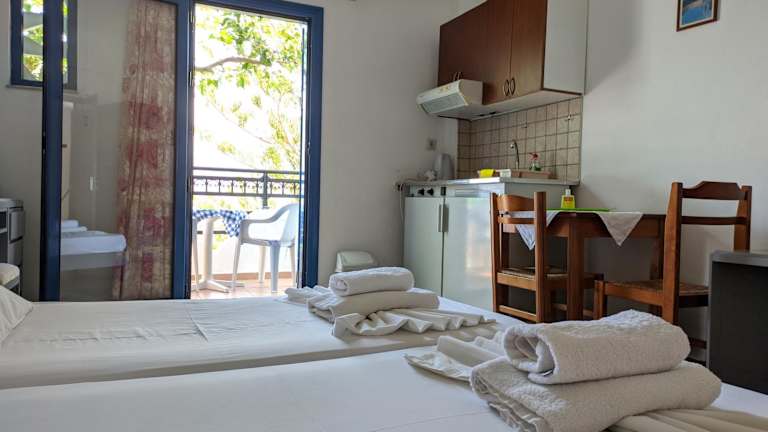 Die Oasis Apartments befinden sich in Frangokastello, in der Nähe von Chania. Die Unterkunft liegt nur 50 Meter vom Strand entfernt und bietet eine ideale Lage für einen erholsamen Strandurlaub. In der Umgebung gibt es auch eine Reihe von Restaurants, Bars und einem Supermarkt, der nur 150 Meter entfernt ist. Die berühmte venezianische Burg von Frangokastello ist nur 800 Meter entfernt und einen Besuch wert. Der Küstenort Chora Sfakion ist 15 km entfernt und der internationale Flughafen Chania ist 65 km entfernt. Öffentliche Parkplätze stehen Ihnen kostenfrei an der Unterkunft zur Verfügung.