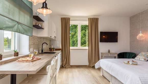 Die Unterkunft Apartments Pausa befindet sich in Žminj, in der Region Istrien. Die Kirche der heiligen Euphemia in Rovinj ist etwa 25 km entfernt. Zu den weiteren Sehenswürdigkeiten gehören das Amphitheater in Pula, das 42 km entfernt liegt, und der Aquapark Istralandia, der eine Entfernung von 48 km aufweist. Der nächstgelegene Flughafen ist der Flughafen Pula, der 41 km von der Unterkunft entfernt ist.