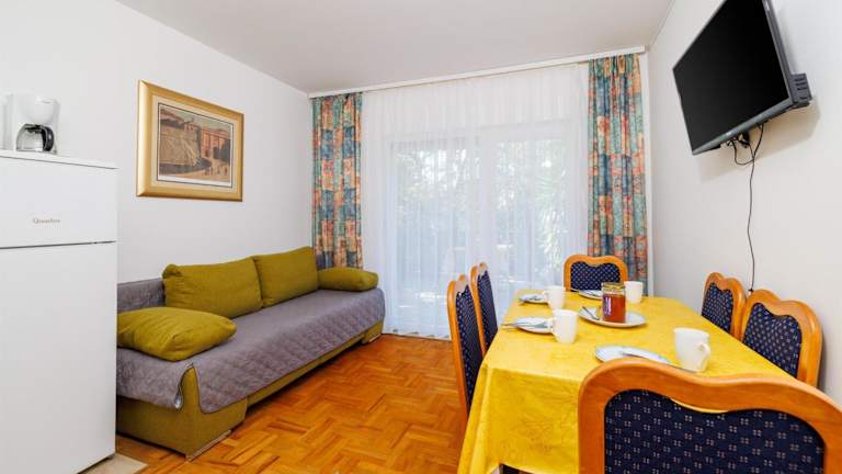 Die Apartments Pinty verfügen über eine voll ausgestattete Küche, so dass Sie Ihre Mahlzeiten nach Belieben zubereiten können. Es gibt auch Restaurants in der Nähe, in denen Sie lokale Spezialitäten und internationale Gerichte genießen können.