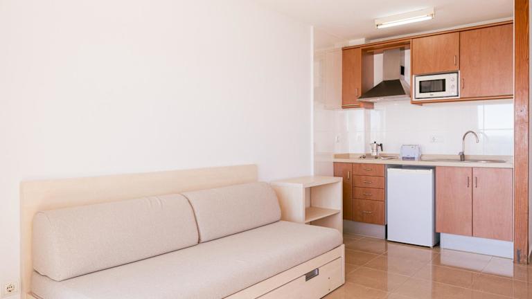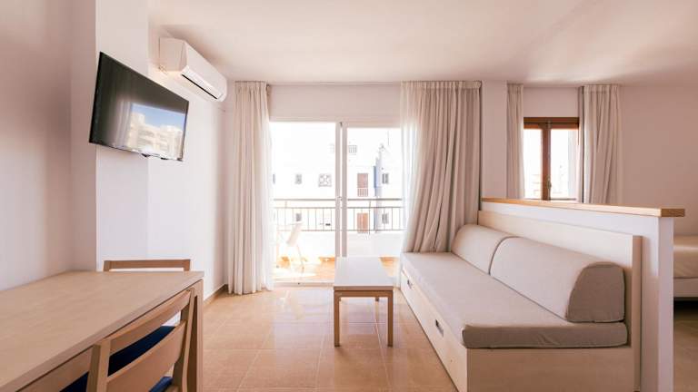 Die Apartments in der Apartamentos Bossa Bay - MC Apartamentos Ibiza sind modern und komfortabel eingerichtet. Alle Unterkünfte verfügen über einen Balkon, auf dem Sie die frische Luft und möglicherweise einen schönen Meerblick genießen können. Die Apartments sind mit Fliesenböden und hellen Holzmöbeln ausgestattet. Das Wohnzimmer verfügt über ein Schlafsofa, einen Safe und einen Flachbild-TV. Im Badezimmer steht ein Haartrockner zur Verfügung. Die Küchenzeile ist gut ausgestattet mit einem Kühlschrank, einer Mikrowelle und einer Kaffeemaschine.