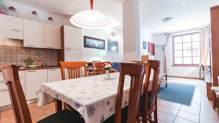 Die klimatisierten Apartments im Hotel Pri Mari bieten Ihnen den Komfort und die Annehmlichkeiten, die Sie für einen angenehmen Aufenthalt benötigen. Die Apartments verfügen über eine voll ausgestattete Küchenzeile, in der Sie Ihre eigenen Mahlzeiten zubereiten können. Der Essbereich bietet ausreichend Platz für gemeinsame Mahlzeiten. Zur weiteren Ausstattung gehören ein TV und ein eigenes Badezimmer mit Dusche und Haartrockner. Einige Apartments bieten zudem einen herrlichen Meerblick, der Ihren Aufenthalt noch angenehmer macht.
