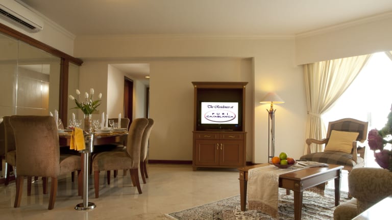 Das Hotel Puri Casablanca bietet 270 moderne Zimmer, die durch ihren Komfort überzeugen. Die Unterkunft ist ausgestattet mit Aufzügen, einer 24-Stunden-Rezeption und einem Kamin, der eine behagliche Atmosphäre schafft. Es stehen eine Gepäckaufbewahrung, ein Safe und ein Geldautomat zur Verfügung. WLAN-Zugang ist verfügbar, und es gibt einen Tourdesk zur Unterstützung bei Ausflügen. Zu den zusätzlichen Diensten gehören ein Zimmerservice, Wäscheservice, ein Friseur und ein eigener Shuttlebus. Parkmöglichkeiten bestehen in einer Garage (gegen Gebühr) sowie auf einem kostenfreien Parkplatz.