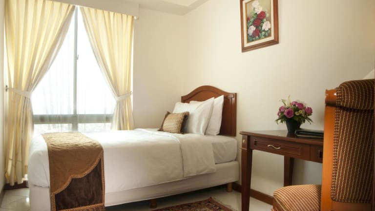 Die Zimmer sind mit einer Küche und einem Badezimmer ausgestattet, wobei in vielen Zimmern ein Balkon vorhanden ist. Jedes Zimmer bietet ein Doppel- oder Queensize-Bett und separate Schlafzimmer sind ebenfalls verfügbar. Zur Ausstattung gehören eine Klimaanlage, ein Safe, eine Minibar, ein Schreibtisch sowie eine gut ausgestattete Kochnische. Das Badezimmer verfügt über eine Dusche und eine Badewanne, die mit Kosmetikartikeln versehen ist. Darüber hinaus sind rollstuhlgerechte Zimmer buchbar.
