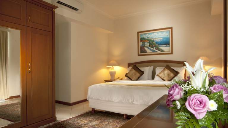 Das Hotel befindet sich im zentralen Geschäftsviertel von Jakarta im Goldenen Dreieck der Stadt, umgeben von Unternehmenssitzen und Botschaften. Die Entfernung zum Stadtzentrum beträgt etwa 100 Meter. Ein Einkaufszentrum ist in etwa 1 km erreichbar. Die Anreise zum Flughafen dauert etwa 90 Minuten.