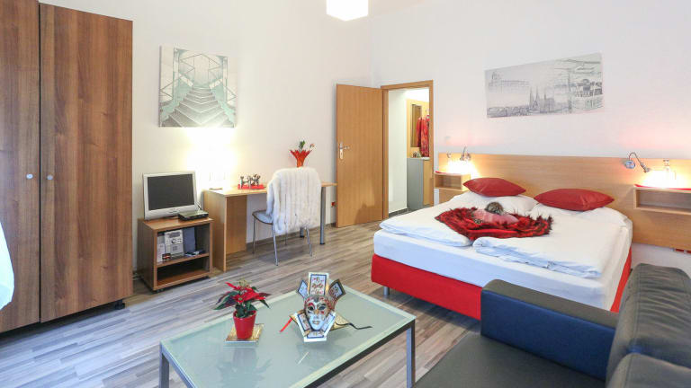 Im Namen der Mitarbeiter begrüßen wir Sie sehr herzlich im Hotel "Queens Apartments"! Genießen Sie Ihren Aufenthalt und entdecken Sie die Besonderheiten eines Appartementhotels! Besondere Eigenschaft des Appartementhotels: Es befindet sich in zentraler Lage, sodass Sie bequem die Stadt erkunden können. Das Haus verfügt über 28 Gästezimmer, davon sind 8 Doppelzimmer. Ins Internet gelangen Reisende über einen Anschluss im Hotelzimmer oder per WLAN (im öffentlichen Bereich des Hotels). Nutzen Sie die gebührenpflichtigen Stellplätze in der Garage des Hotels. Für ein extra Kinderbett oder die Bestellung eines Nichtraucherzimmers, geben Sie dies bitte bei Ihrer Buchung an. Wir werden unser Möglichstes tun, Ihrem Wunsch nachzukommen! Ein Arbeitstisch, ein Fön, ein Safe sowie ein Radio sind generell in jedem Gästezimmer verfügbar. Alle Hotelzimmer haben ein Badezimmer, sowie einen eigenen gemütlichen Balkon. Damit Sie sich wie zu Hause fühlen können! An der Bar unseres Hauses erwartet die Hotelgäste eine breite Auswahl an Getränken. Lassen Sie sich das Frühstück im "Queens Apartments" schmecken! Die Bezahlung Ihrer Hotelrechnung erledigen Sie bequem und einfach per MasterCard/EuroCard, American Express, Visa, Diners Club-Karte! Wir würden uns sehr freuen, Sie in unserem Haus willkommen zu heißen!