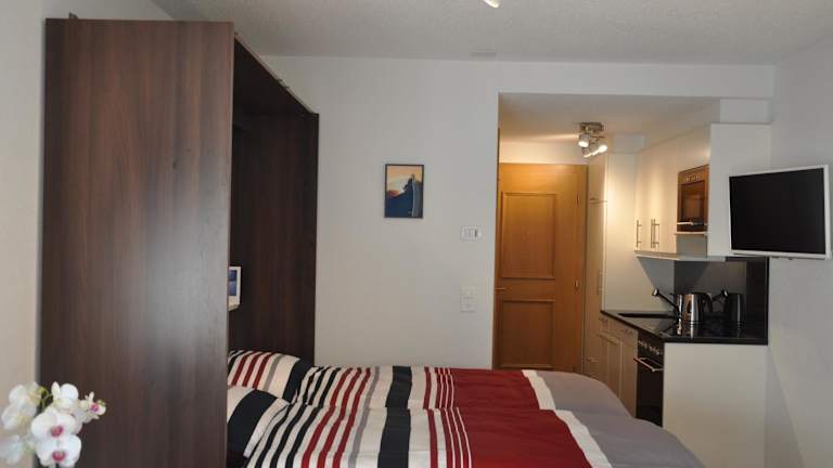 Die Iris Residenz Apartments befinden sich direkt an den Pisten des Skigebiets Torrent, was sie zu einem idealen Ausgangspunkt für Wintersportaktivitäten macht. Die Therme Leukerbad liegt nur 15 Gehminuten entfernt und lädt zum Entspannen in den heißen Quellen ein. Das Zentrum von Leukerbad mit seinen Lebensmittelgeschäften, Restaurants und Geschäften erreichen Sie in nur 5 Minuten zu Fuß. Die nächste Bushaltestelle ist ebenfalls nur 200 m entfernt. Für Tagesausflüge können Sie die Stadt Interlaken in 2 Stunden mit dem Auto erreichen.