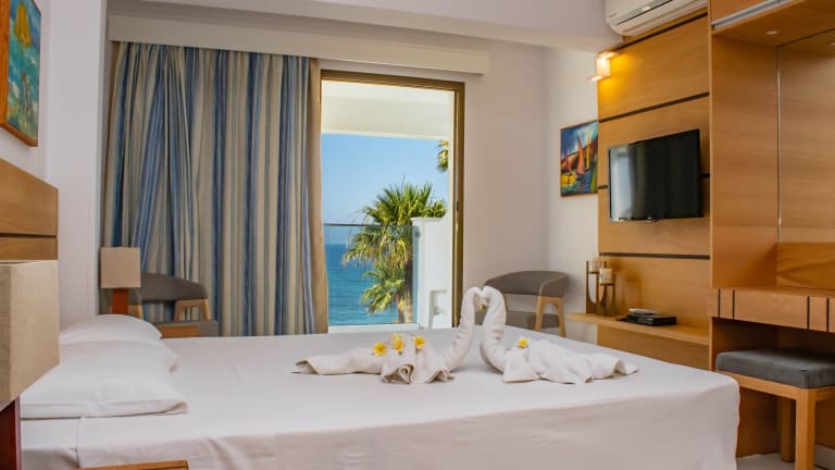 Die Rododafni Beach Apartments bieten komfortable Unterkünfte zur Selbstverpflegung. Jedes Apartment verfügt über eine Küchenzeile mit einem Kühlschrank, einer Mikrowelle und Herdplatten sowie einen Essbereich. Die Apartments sind mit Sat-TV ausgestattet und einige bieten auch einen separaten Sitzbereich. Von den Balkonen aus können Sie den wunderschönen Blick auf das Mittelmeer genießen. Kostenloses WLAN ist in allen Apartments verfügbar.