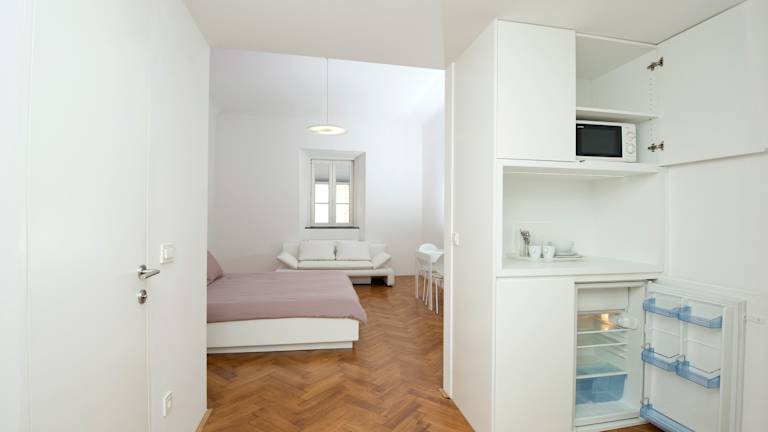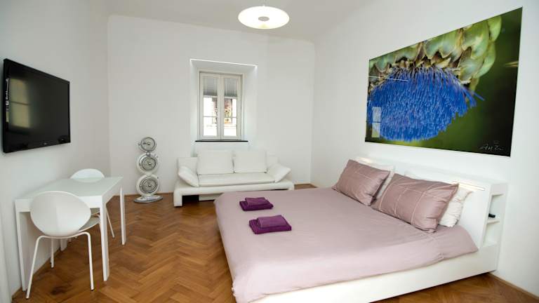 Die Zimmer im Hotel Galeria River sind geräumig und elegant eingerichtet. Sie verfügen über besonders lange Betten, hohe Decken und große Kleiderschränke. Jedes Zimmer ist mit einer Mikrowelle und einem Kühlschrank ausgestattet, und in den Studios gibt es zusätzliche Kochmöglichkeiten. Die stilvollen Badezimmer bieten kostenfreie Pflegeprodukte für Ihren Komfort.