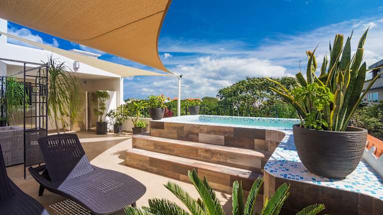 Die Suites Corazon befinden sich in zentraler Lage in Playa del Carmen, nur 3 Gehminuten vom Strand entfernt. In unmittelbarer Nähe finden Sie eine große Auswahl an Restaurants mit nationaler und internationaler Küche. Zwei Supermärkte sind ebenfalls nur 5 Gehminuten entfernt. Die berühmte 5th Avenue, bekannt für ihre Einkaufsmöglichkeiten und gastronomischen Einrichtungen, erreichen Sie in nur 5 Gehminuten. Die archäologische Stätte Chichén Itzá ist eine 2,5-stündige Fahrt von der Unterkunft entfernt.