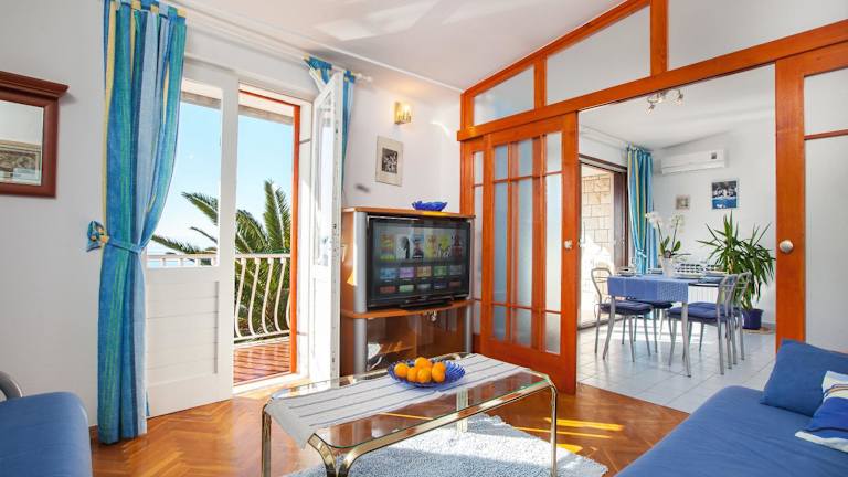 Die Apartments Teo bieten klimatisierte Unterkünfte mit allem Komfort, den Sie für einen angenehmen Aufenthalt benötigen. Jedes Apartment verfügt über eine Terrasse oder einen Balkon, von dem aus Sie den Blick auf die Stadt und das Meer genießen können. Der gemütliche Sitzbereich lädt zum Entspannen ein und der Flachbild-Sat-TV sorgt für Unterhaltung. Die Küche ist gut ausgestattet mit einem Kühlschrank, einem Backofen, einer Mikrowelle und einem Wasserkocher, so dass Sie Ihre eigenen Mahlzeiten zubereiten können. Kostenloses WLAN steht Ihnen ebenfalls zur Verfügung.