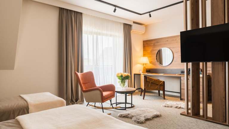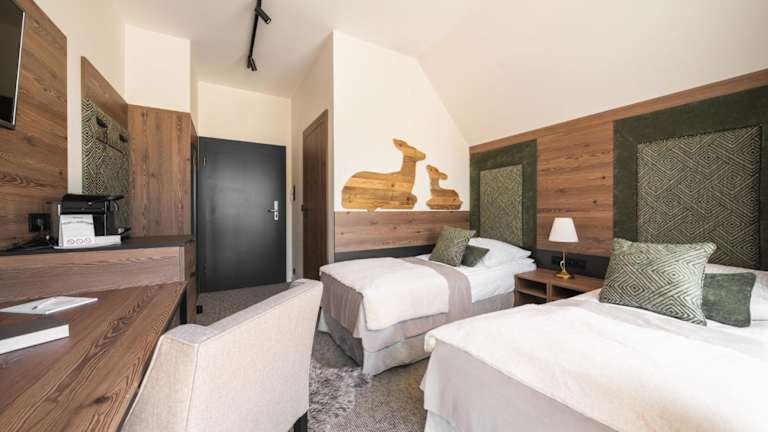 Die Zimmer im Termy Szaflary sind modern und komfortabel eingerichtet. Jedes Zimmer verfügt über eine Klimaanlage, einen Flachbild-TV und ein eigenes Bad mit Dusche und kostenlosen Pflegeprodukten. Einige Zimmer bieten auch einen Balkon. Bettwäsche und Handtücher werden gestellt.