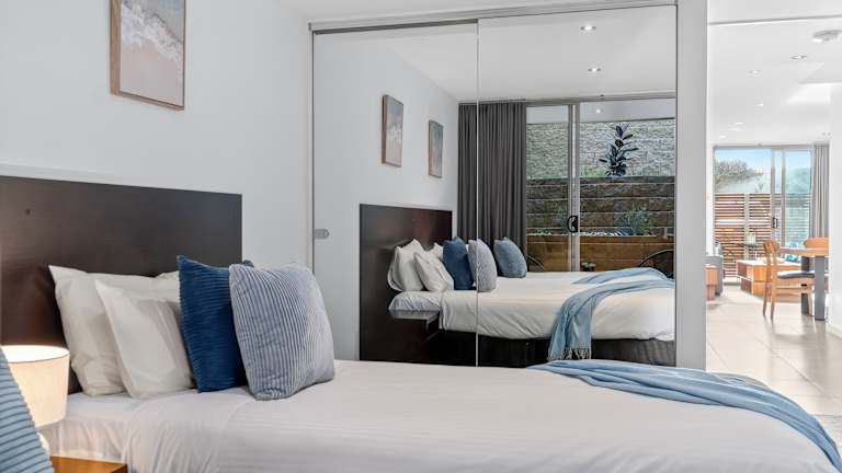 Die Dolphin Apartments bieten luxuriöse Unterkünfte in einer modernen und renovierten Umgebung. Die Apartments sind klimatisiert und verfügen über einen großzügigen Wohn- und Essbereich sowie über ein Einzel-Spa-Bad. Die Ausstattung ist zeitgemäß und beinhaltet neue Teppiche, Möbel und Vorhänge.