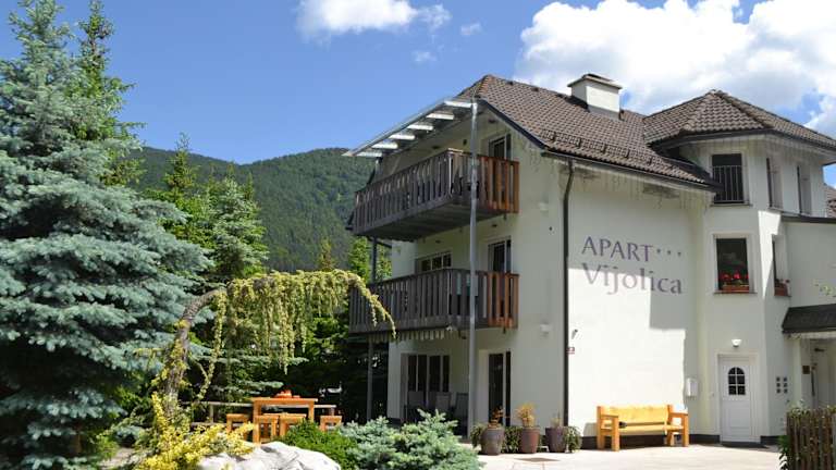 Die Apartments Vijolica in Kranjska Gora bieten Ihnen eine ideale Unterkunft am Fuße der Skipisten. Hier können Sie in einer malerischen Umgebung entspannen und die zahlreichen Aktivitäten und Annehmlichkeiten des Hotels genießen. Die Apartments sind geräumig und in hellen Farben gehalten, mit einem eigenen Balkon und einem schönen Garten. WLAN steht Ihnen kostenlos zur Verfügung und Sie können auch den Grillplatz nutzen.