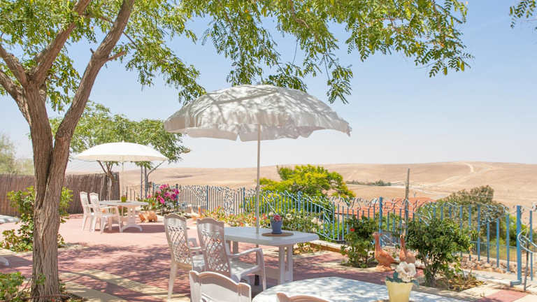 Das Hotel Villa 1000 befindet sich in der kleinen Stadt Arad in der Judäischen Wüste. Die ruhige Lage ermöglicht es den Gästen, die Natur und die Schönheit der Umgebung zu genießen. Die Unterkunft liegt 1000 m über dem Toten Meeresspiegel und bietet einen beeindruckenden Blick auf die umliegende Wüste. In nur 30 Minuten erreichen Sie das Tote Meer, wo Sie die heilenden Eigenschaften des Salzwassers genießen können. Das Zentrum von Beersheba, der Hauptstadt der Region Negev, ist nur 48 km entfernt und bietet eine Vielzahl von Sehenswürdigkeiten und Aktivitäten.