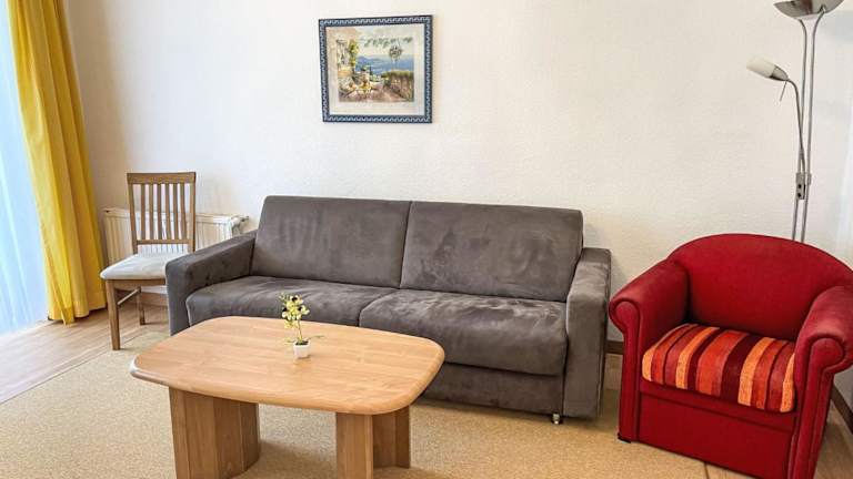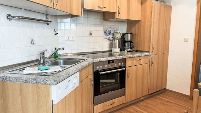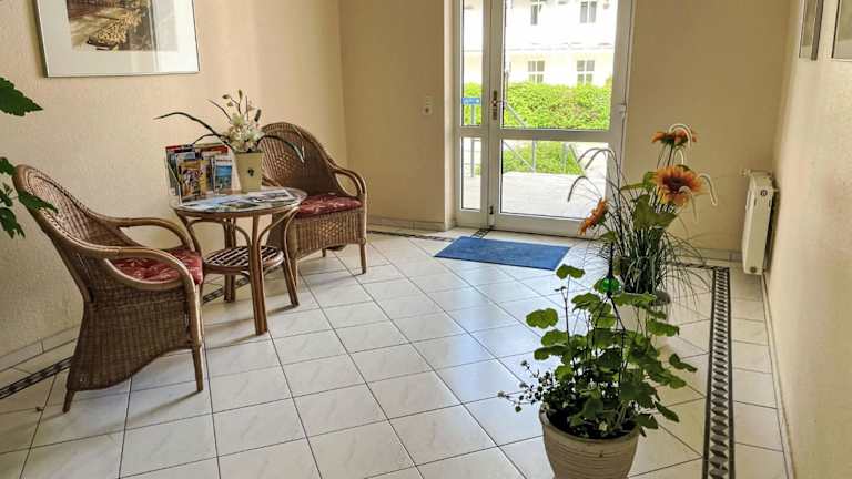 Das Apartment verfügt über 2 Schlafzimmer, ein Wohnzimmer mit Sat-TV, eine voll ausgestattete Küche mit Kühlschrank und Geschirrspüler sowie ein Badezimmer mit Dusche. Der Balkon und der Garten bieten zusätzlichen Raum zum Entspannen und Genießen der frischen Ostseeluft. Kostenloses WLAN ist in der gesamten Unterkunft verfügbar.