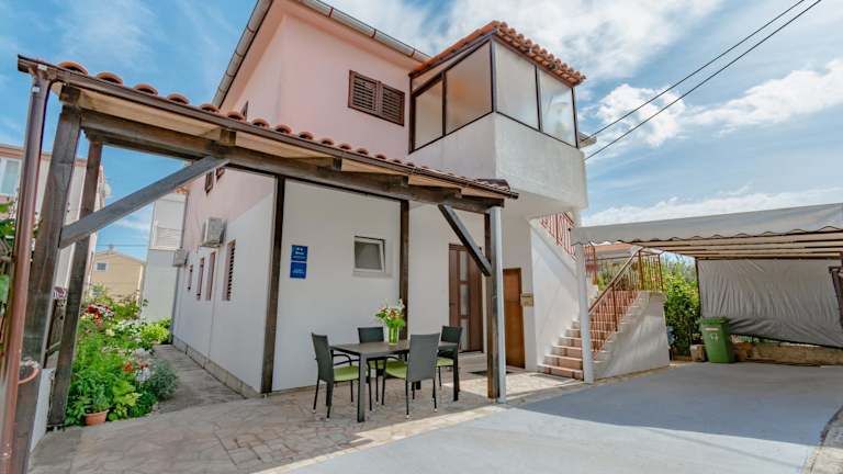 "Die Apartments Vitorio befinden sich in Puntamika, einem beliebten Touristenviertel von Zadar. Der Kieselstrand ist nur 300 m entfernt und entlang der Strandpromenade finden Sie eine Vielzahl von Restaurants, Bars und Wassersportmöglichkeiten. Die Altstadt von Zadar, mit ihren faszinierenden architektonischen Kunstwerken wie der ""Gruß an die Sonne"" und der ""Meeresorgel"", ist nur 4 km entfernt. Die historische Donatuskirche und das römische Forum sind ebenfalls einen Besuch wert. In den örtlichen Reisebüros können Sie Ausflüge zu den Nationalparks Kornati-Inseln, Plitvicer Seen und Krka Wasserfälle organisieren. Der lokale Nahverkehr bietet häufige Busverbindungen zu verschiedenen Zielen in der Stadt, und der Fährterminal ist 4 km entfernt. Der zentrale Busbahnhof ist in 5 km zu erreichen und der Flughafen Zadar ist 20 km entfernt."