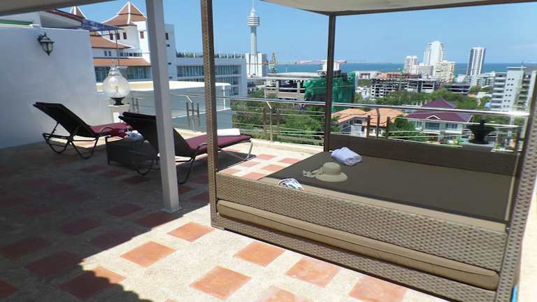 Das Hotel bietet einen beeindruckenden Außenpool, in dem Sie sich erfrischen und entspannen können. Erkunden Sie die Umgebung und entdecken Sie die Sehenswürdigkeiten von Pattaya, die nur wenige Gehminuten entfernt sind. Das freundliche Personal des Hotels steht Ihnen gerne zur Verfügung, um einen Shuttleservice zu organisieren und Ihren Aufenthalt so angenehm wie möglich zu gestalten. Kostenfreie Parkplätze stehen Ihnen ebenfalls zur Verfügung.