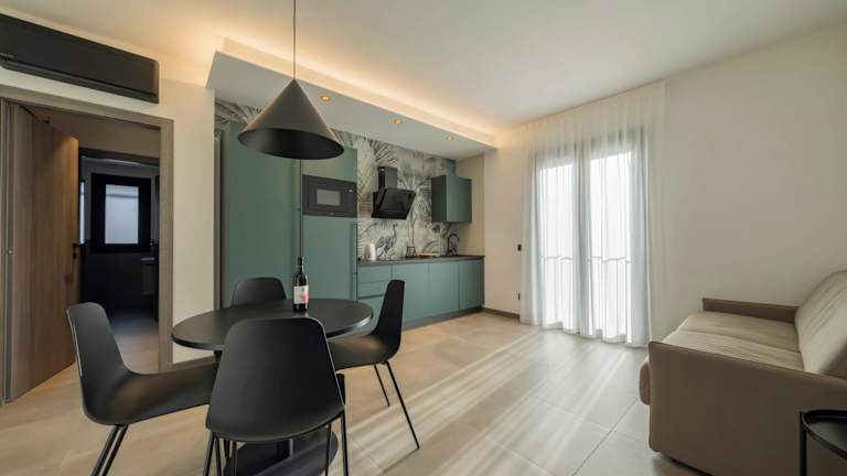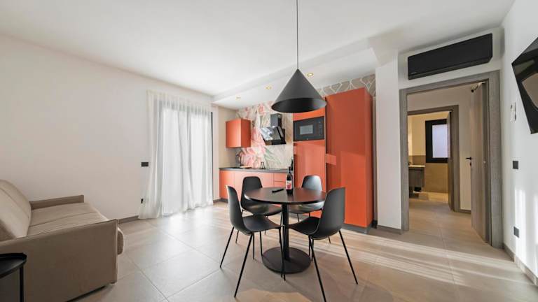 Die Unterkunft bietet klimatisierte Wohneinheiten, die mit einem Flachbild-TV, einem eigenen Badezimmer mit Bidet und Dusche sowie einem Sitz- und Essbereich ausgestattet sind. Alle Apartments sind mit Kühlschrank und Kaffeemaschine versehen.
