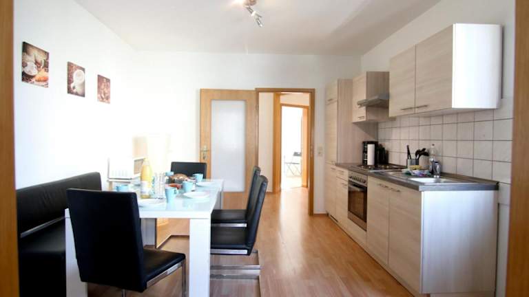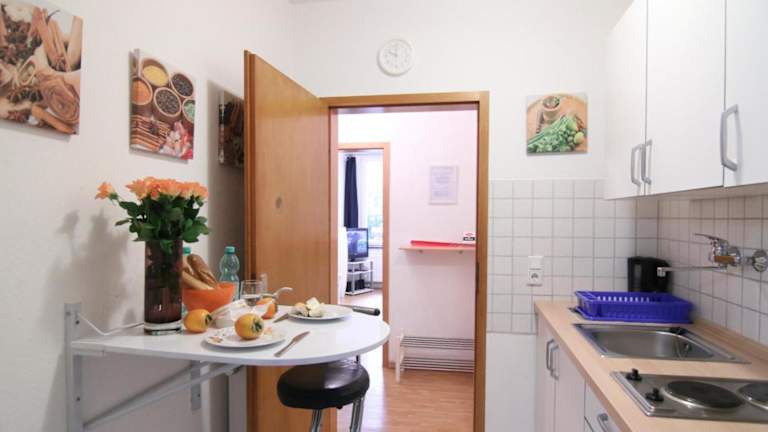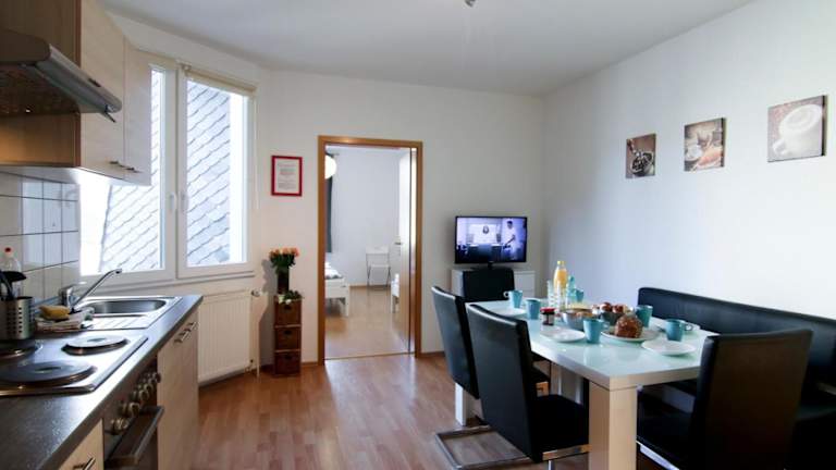 Die Apartmentwohnungen sind mit voll ausgestatteten Küchen ausgestattet, die Kühlschrank, Mikrowelle, Herdplatte, Kaffeemaschine und Wasserkocher umfassen. Ein Esstisch ist ebenfalls vorhanden, sodass Gäste ihre Mahlzeiten bequem in der Unterkunft zubereiten können.