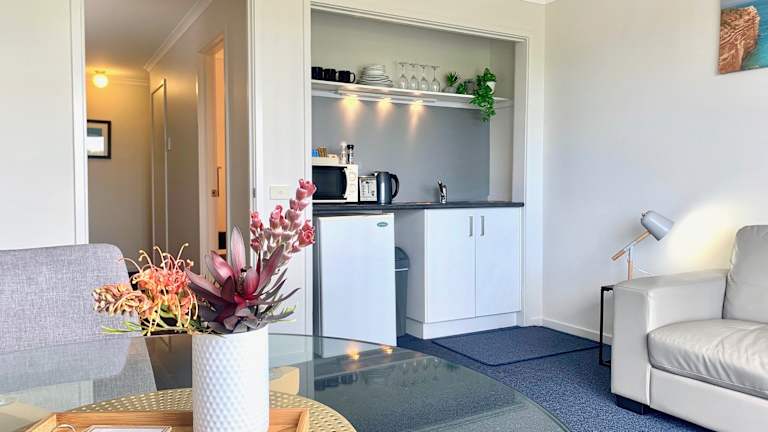 Das Waterfront Motor Inn bietet eine Vielzahl von Unterkünften, darunter Apartments mit Klimaanlage, Heizung und einem gemütlichen Sitzbereich mit einem Flachbild-TV. Jedes Apartment verfügt zudem über einen Toaster und Kaffee- und Teezubehör für Ihre Bequemlichkeit. Einige der Zimmer bieten auch einen herrlichen Meerblick, der Ihren Aufenthalt noch angenehmer macht.