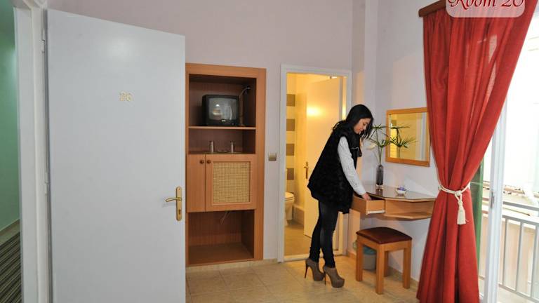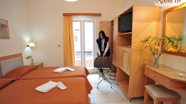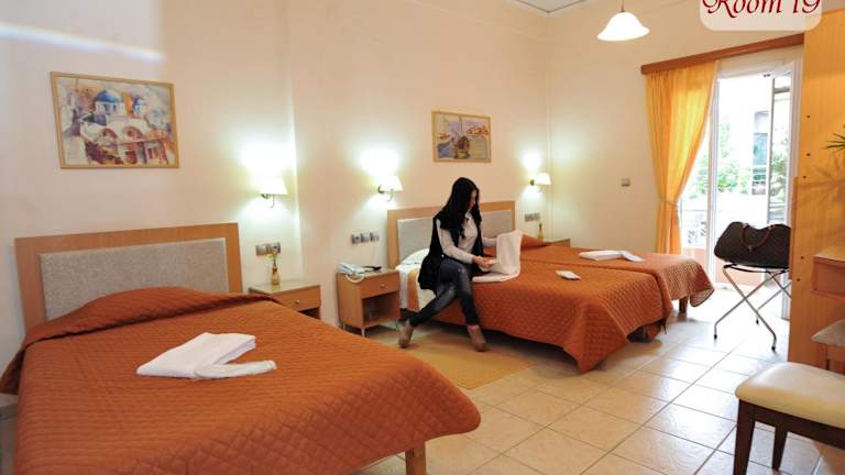 Die Zimmer im Apollon Hotel sind komfortabel und stilvoll eingerichtet. Sie sind in Erdtönen gehalten und verfügen über einen Balkon mit Blick auf die Umgebung. Zur Ausstattung gehören eine Klimaanlage, ein Schreibtisch, ein Fernseher und ein eigenes Badezimmer mit Duschkabine, Haartrockner und kostenlosen Pflegeprodukten.