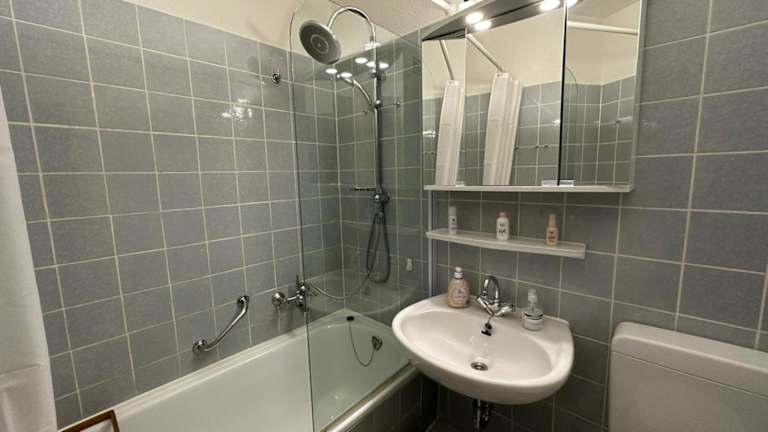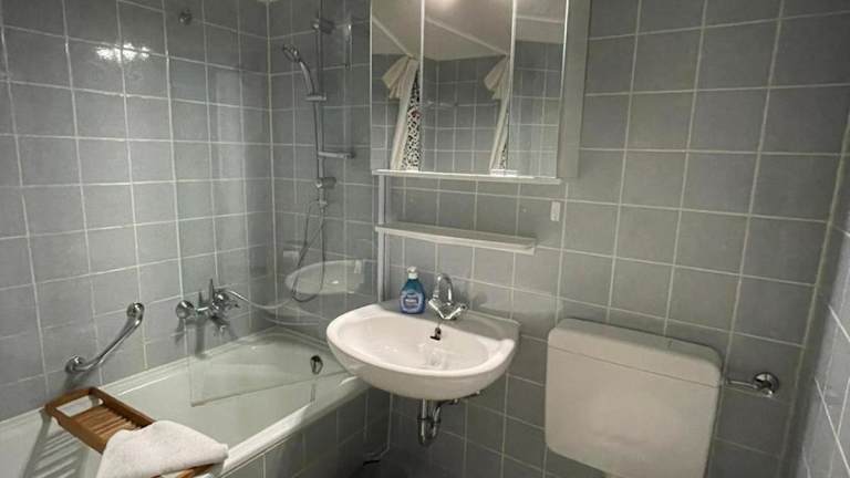 Die Wohnung verfügt über zwei Schlafzimmer, ein Badezimmer sowie eine voll ausgestattete Küche. Zur Ausstattung gehören Bettwäsche, Handtücher, ein TV und ein Balkon mit Bergblick.