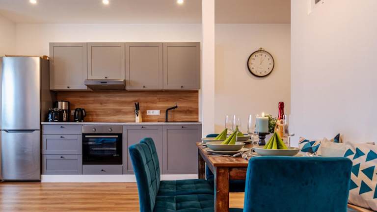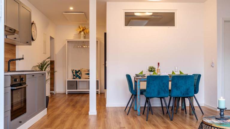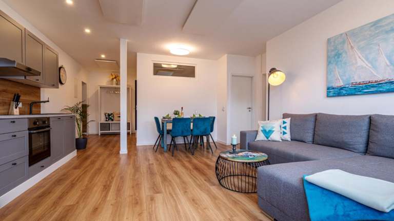 Die Ferienwohnung ist mit 2 Schlafzimmern, einer Küche (ausgestattet mit Kühlschrank und Geschirrspüler), einem Flachbild-TV, einem Sitzbereich und einem Badezimmer mit Dusche eingerichtet. Handtücher und Bettwäsche können gegen Aufpreis bereitgestellt werden.