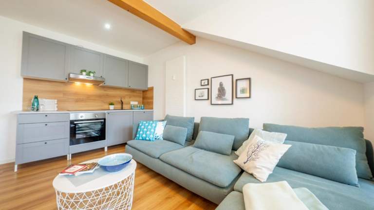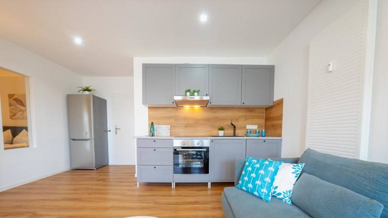 Die Ferienwohnung besteht aus einem Schlafzimmer, einem Wohnzimmer, einer voll ausgestatteten Küche mit Kühlschrank und Kaffeemaschine sowie einem Badezimmer mit Dusche und Haartrockner. Handtücher und Bettwäsche können gegen Aufpreis bereitgestellt werden. Die Räume sind Nichtraucherzimmer und die Unterkunft entspricht den Richtlinien zur Hygiene.