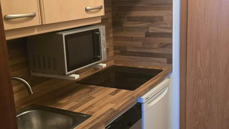 Die Ferienwohnung ist ausgestattet mit einem Flachbild-TV, einer Küchenzeile, die einen Kühlschrank, einen Geschirrspüler, eine Mikrowelle, eine Kaffeemaschine und einen Wasserkocher umfasst.