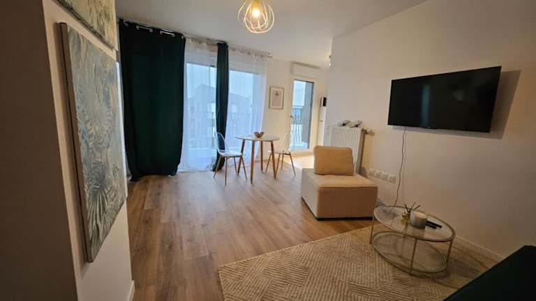 Das Appart 10 min Euro Disney - Bussy Saint Georges ist eine Ferienwohnung im 2. Stock eines Gebäudes. Sie bietet eine Terrasse mit Gartenblick, kostenloses WLAN und eine umfassende Ausstattung. Es handelt sich um eine Nichtraucherunterkunft, in der keine Feiern gestattet sind und nur Gäste ab 18 Jahren einchecken können. Es werden verschiedene Sicherheitsmaßnahmen und Hygienestandards eingehalten.