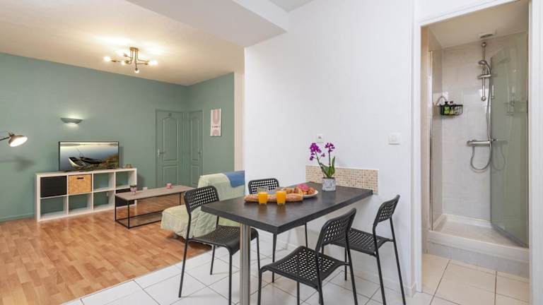 Das Appart calme avec parking proche place Ney verfügt über ein gemütliches Schlafzimmer, in dem Sie sich nach einem langen Tag voller Aktivitäten entspannen können. Die gut ausgestattete Küche bietet Ihnen die Möglichkeit, eigene Mahlzeiten zuzubereiten. Eine Waschmaschine steht Ihnen ebenfalls zur Verfügung. Das moderne Badezimmer ist mit einem Haartrockner und frischen Handtüchern ausgestattet. Bettwäsche wird gestellt, um Ihnen einen komfortablen Aufenthalt zu ermöglichen.