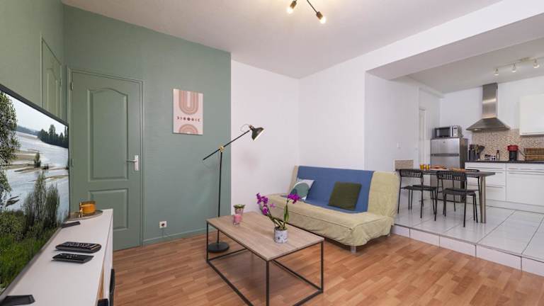 Das Appart calme avec parking proche place Ney ist eine ideale Unterkunft in Angers für Reisende, die Ruhe und Komfort suchen. Mit seiner günstigen Lage in der Nähe von Sehenswürdigkeiten und Annehmlichkeiten bietet dieses Apartment alles, was Sie für einen angenehmen Aufenthalt benötigen. Genießen Sie die gut ausgestattete Küche, das komfortable Schlafzimmer und das moderne Badezimmer.